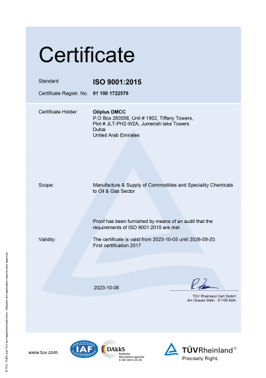- Commitment to satisfy the applicable requirements for high quality specialty and commodity chemicals for Oil and Gas Industry.